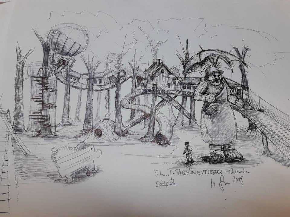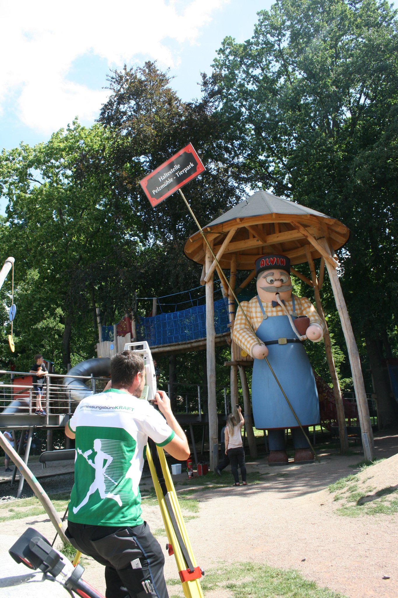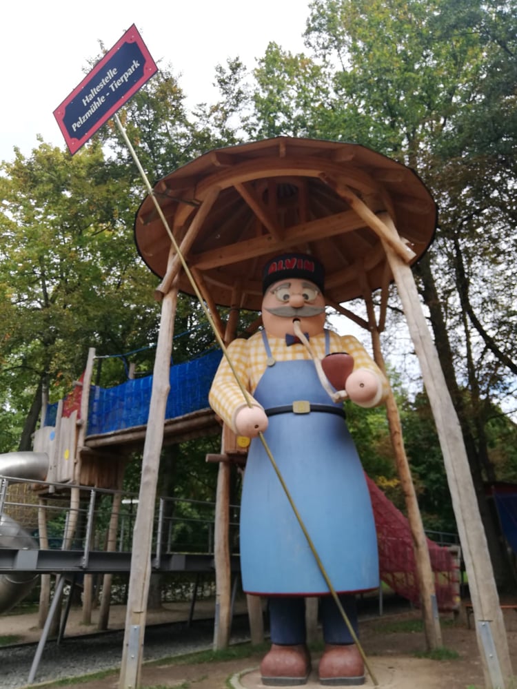 Angefertigt wurde der Koloss aus neun Kubikmetern Holz von Mario Günther, dem Geschäftsführer der Firma Massivholz-Design aus Raschau-Markersbach. Sogar geräuchert hat Alvin schon, die 80 Zentimeter hohe Räucherkerze kam direkt aus dem bekannten Crottendorfer Werk. Nicht nur der große Bahnwärter, sondern der gesamte Abenteuerspielplatz, ist seit 2019 ein beliebter Magnet für Familien mit Kindern in der Freizeitregion Chemnitz-Rabenstein.
